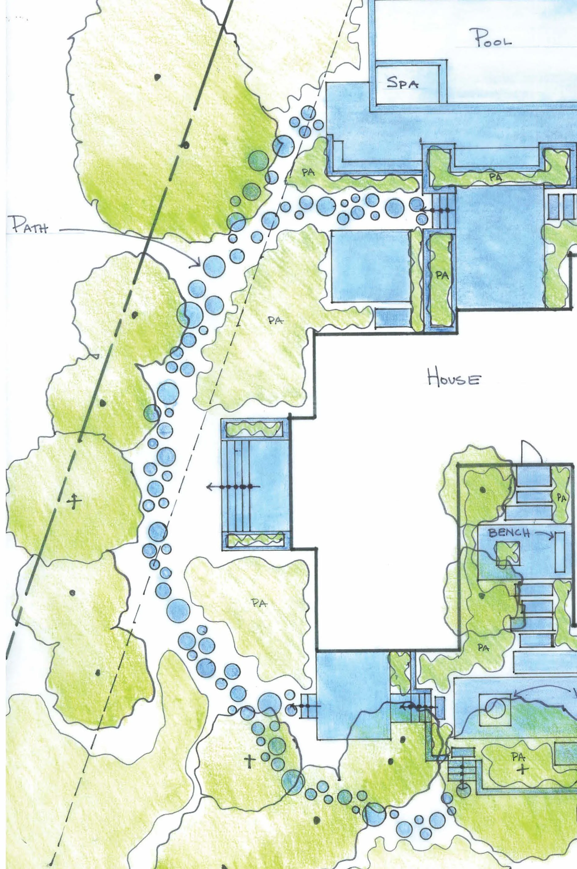 We use point to identify key factors: entry, cross axis, destination and legacy trees. We use line to create connection, identify key site lines, and provide movement. We will talk about line in our next post. Today, we want to talk about point.