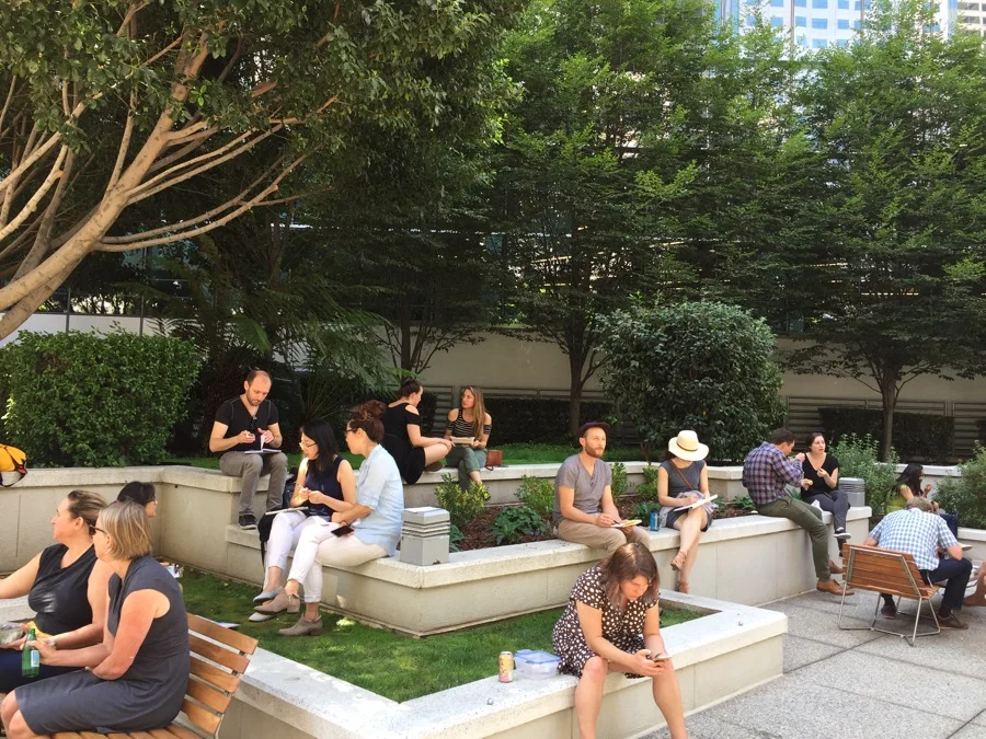 What a fun time sketching in the urban park on the roof terrace at 100 First Street amongst the towers.