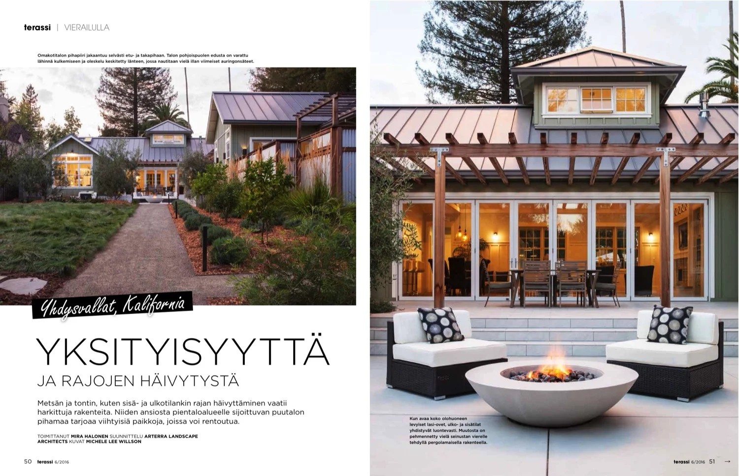 The cover and three spreads of Finland's Terassi feature The Talk of the Neighborhood.